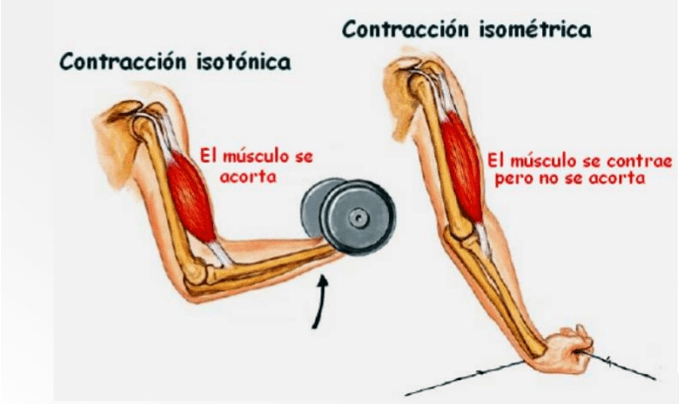 Se dice que la contracción muscular es isométrica cuando el músculo no se acorta durante la contracción e isotónica cuando se acorta, pero la tensión del músculo permanece constante durante toda la contracción.