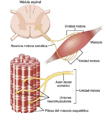 En la mayoria de los músculos esqueléticos las fibras se extienden a lo largo de toda la longitud del musculo. Cada fibra esta inervada por una sola terminación nerviosa.